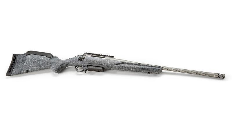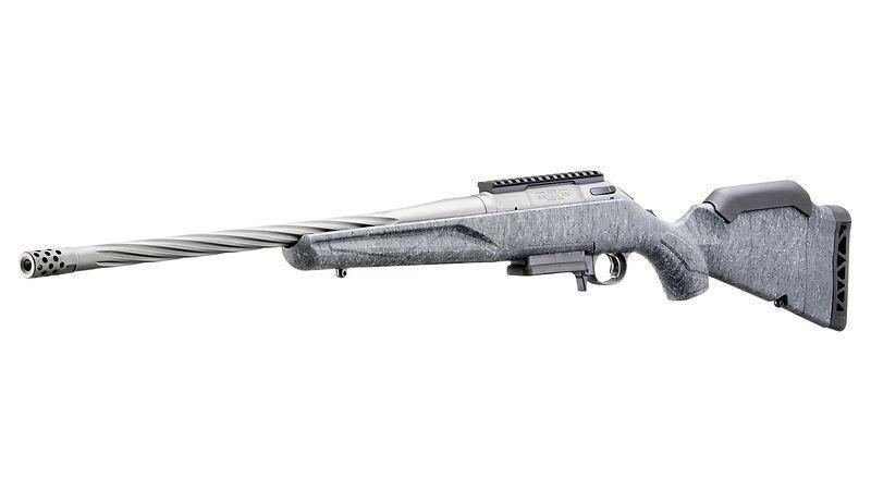 Ruger American® Rifle Generation II - A standard modellek Gun Metal Gray Cerakote® bevonatú csővel és sötétszürke pöttyös tusával vannak felszerelve. Formája és textúrája kiváló fogást és irányítást biztosít a terepen. A hidegen kovácsolt 20 hüvelykes, fél-könnyű cső spirálozott, hogy javítsa a puska egyensúlyát anélkül, hogy a merevség vagy a pontosság rovására menne.