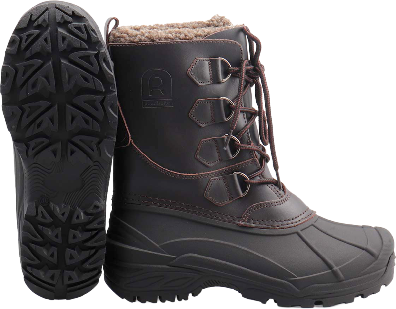 ROUCHETE HUDSON Plus téli csizma kivehető béléssel Robusztus téli csizma, amelyet kifejezetten hideg és havas körülményekhez fejlesztettek ki. Kiváló minőségű anyagokat ötvöz funkcionális kialakítással, és optimális védelmet valamint magas viselési kényelmet biztosít. A csizma sokoldalúságával győzi meg viselőjét. A kivehető belső cipő külön is viselhető vagy szárítható, ami megkönnyíti a tisztítást. A robusztus kialakítás stabilitást biztosít, míg a szigetelő anyagok hideg hőmérsékleten is kellemesen melegen tartják a lábakat. A tapadó talpnak köszönhetően a csizma csúszós felületeken is kiválóan használható. Jellemzők: • strapabíró bőr a hosszú élettartamért • kivehető belső cipő a melegség és a higiénia érdekében • profilozott elasztomer külső talp a biztonságos tapadásért hóban és jégen • klasszikus fűzős rögzítés az egyéni illeszkedésért Szín: barna Felső anyag: bőr; Belső cipő: gyapjú és poliészter, Talp: elasztomer
