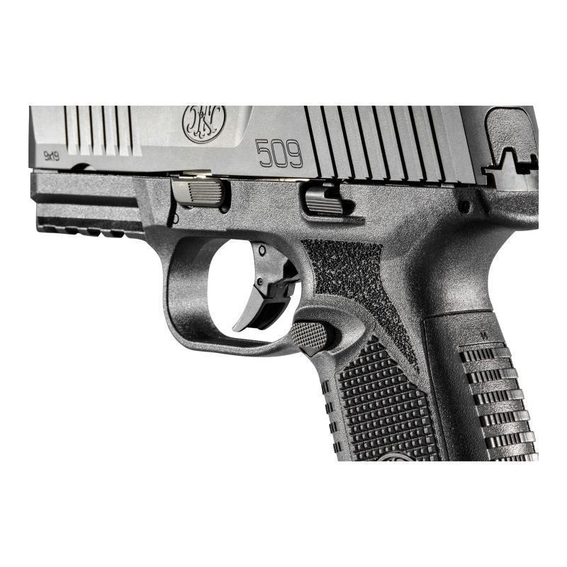 Az FN 509 NMS (No Manual Safety) egy 9 mm-es, polimer vázas pisztoly, amelyet ergonomikus kialakítása és tartóssága jellemez. A fekete színű (BLK/BLK) kivitel diszkrét megjelenést biztosít. A DS (Double Stack) jelölés arra utal, hogy a pisztoly kettős soros tárakkal rendelkezik, amelyek kapacitása 17 lőszer, és a csomagban két ilyen tár található (2X17).